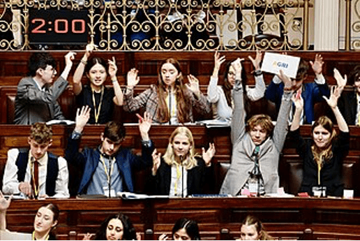 Zdroj: Wikimedia/Houses of the Oireachtas from Ireland/CC BY 2.0 (Zasedání Evropského parlamentu mládeže – akce, kde mladí lidé napodobují práci poslanců Evropského parlamentu)